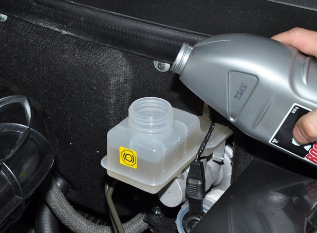Pokiaľ je brzdovej kvapaliny nedostatok, dopĺňame len brzdovú kvapalinu povolenú výrobcom vozidla.
