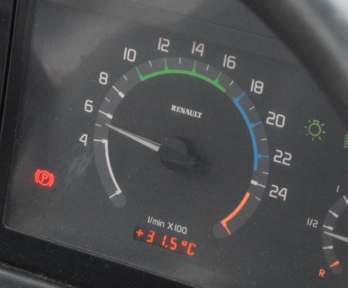 Otáčkomer moderných nákladných automobilov a autobusov má štyri polia: