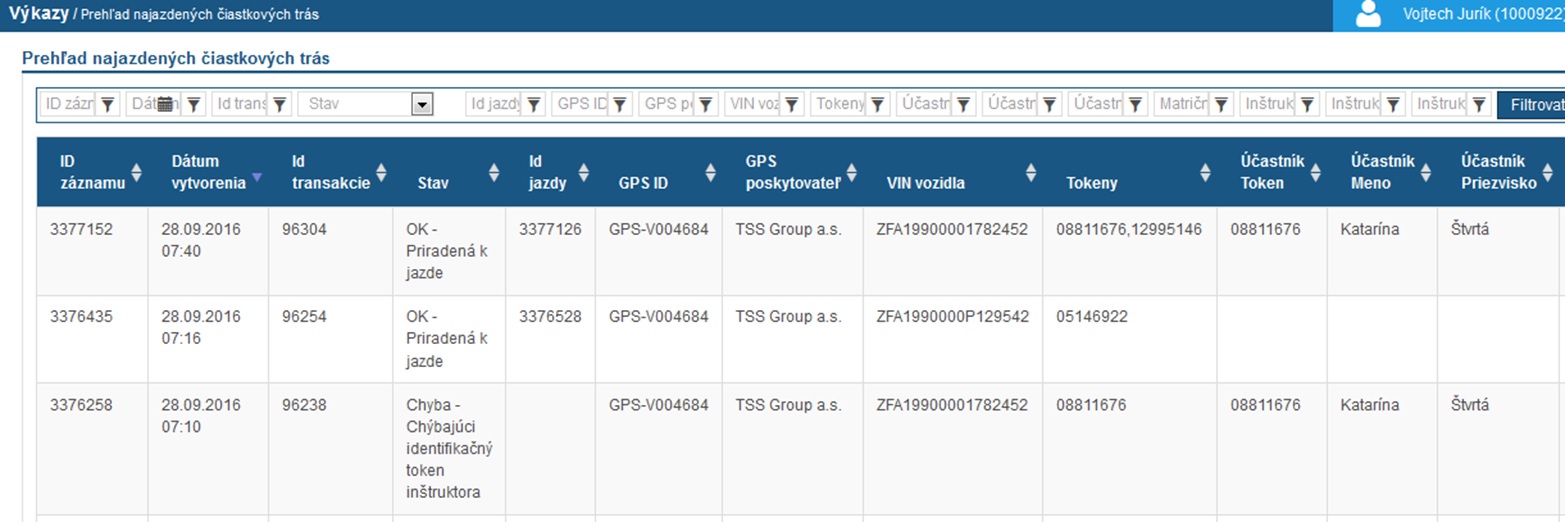Od poskytovateľa systém dostáva čiastkové trasy, ktoré sú na základe pravidiel spájané do jázd.