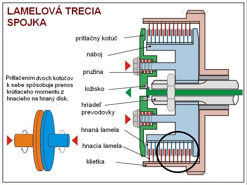 - vedľa lamely hnacej, spojenej so zotrvačníkom a prítlačným kotúčom,