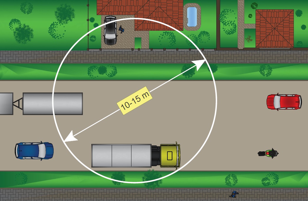 Nákladný automobil a autobus potrebuje k plynulému otáčaniu priestor široký približne 10 až 15 metrov. Preto je dôležité si zvážiť najvhodnejší spôsob otočenia.