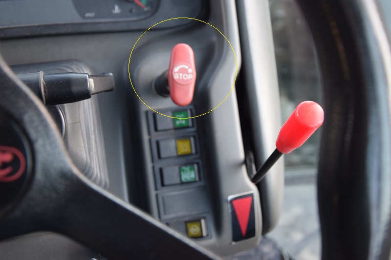 - Pred opustením traktora vytiahneme kľúč zo spínacej skrinky a uzamkneme kabínu.